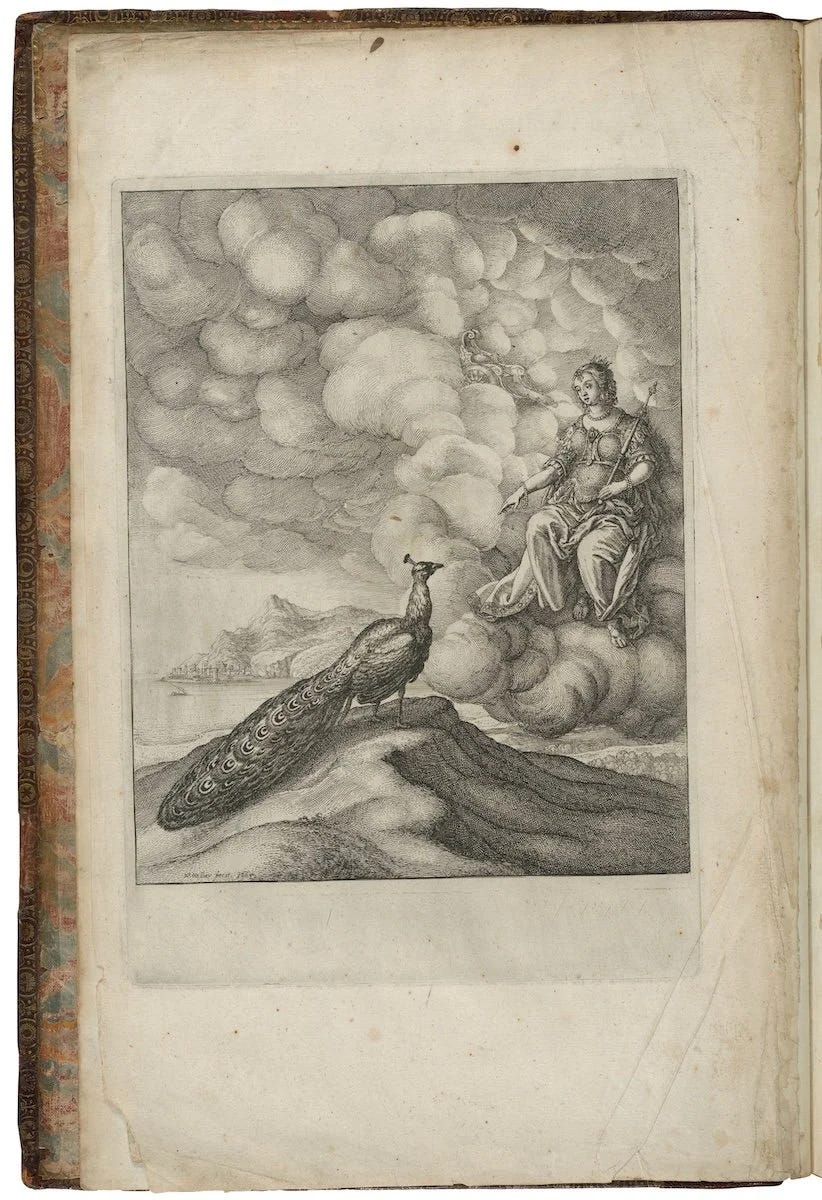 Image: The peacock is companion to Juno, Queen of the Roman Gods. Illustration by John Ogilby, 1668. Folger Shakespeare Library